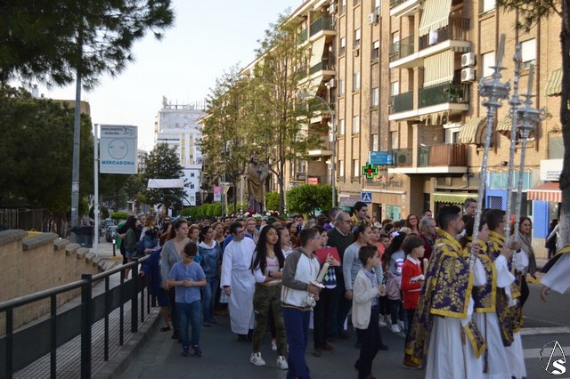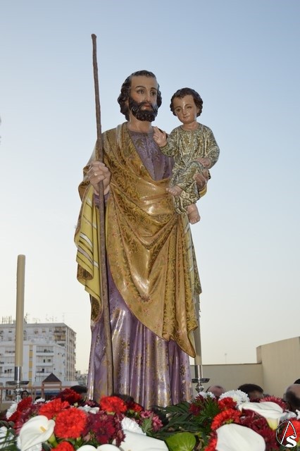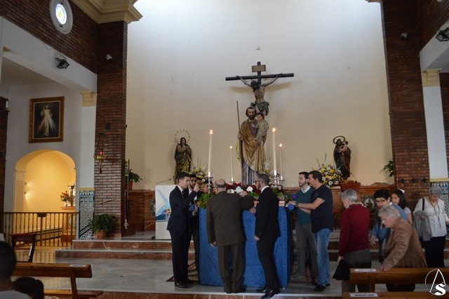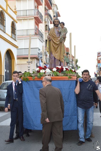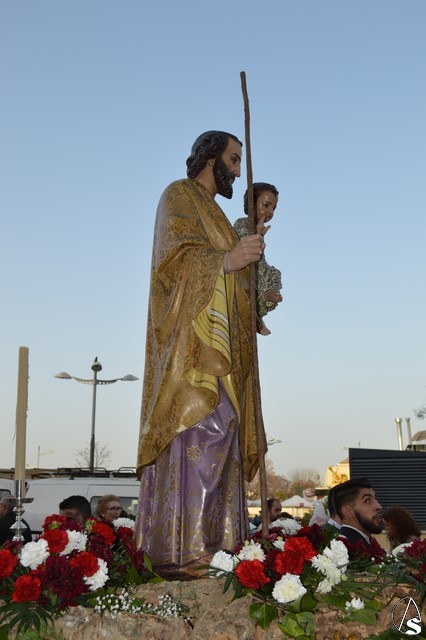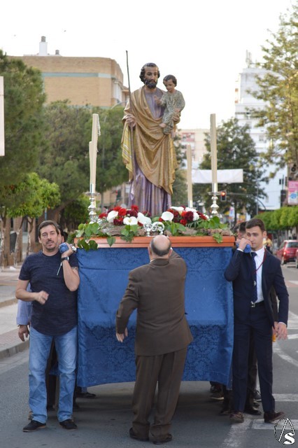 Portado a hombros de los feligreses y miembros de la Hermandad Sacramental de San José recorrió las calles del Barrio Alto para presidir la Eucaristía junto a numerosos vecinos que acompañaron al Santo. Con cánticos populares los más pequeños de la Parroquia quisieron acompañarlo en una calurosa tarde de marzo.