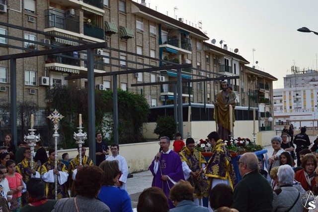 Manuel Pinto Montero. La Parroquia de San José Obrero de San Juan de Aznalfarache está conmemorando el Cincuentenario de su creación y por ello han preparado un programa de actos donde podemos destacar el Triduo itinerante que se ha celebrado por distintos rincones del Barrio Alto. La tarde de ayer, sábado 18 de marzo, tuvo lugar el último día de Triduo en la Plaza de Extremadura donde fue trasladada la antigua talla de San José que se venera a la subida del Coro en el Templo Parroquial.