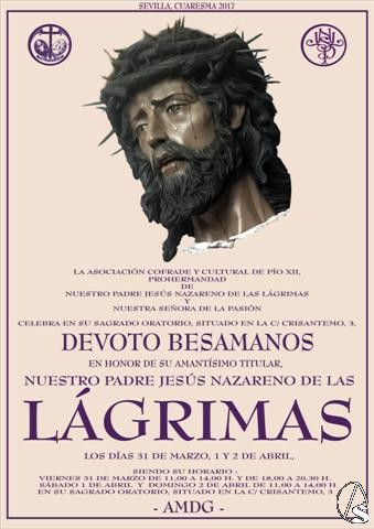 Arte Sacro. Besamanos de Jesús Nazareno de las Lágrimas de Pío XII el viernes 31 de marzo de 11 a 14 y de 18 a 21 horas.