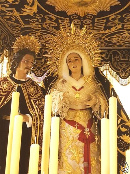 María Santísima de los Dolores y Misericordia ya se encuentra entronizada en su paso de palio, junto a San Juan Evangelista, vestida por J.A. Grande de León para la salida procesional. Como novedad, este año luce en su pecho la Medalla de la Provincia que concedió la diputación a Francisco Palacios "El Pali", cedida por la familia para la ocasión. Es la primera que lucirá una dolorosa de entre las concedidas en el período de la democracia.