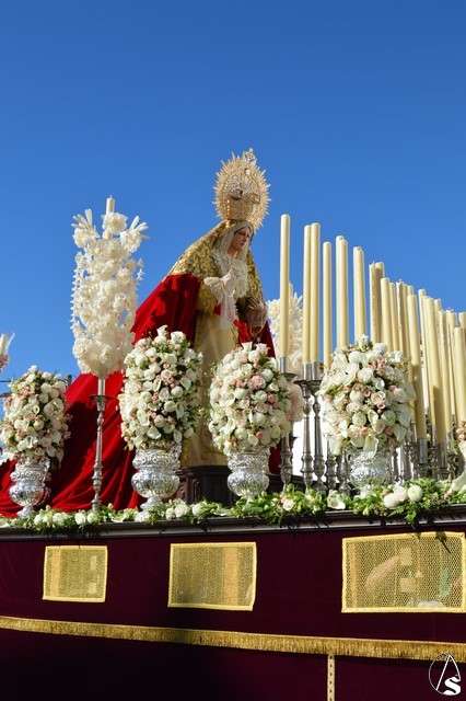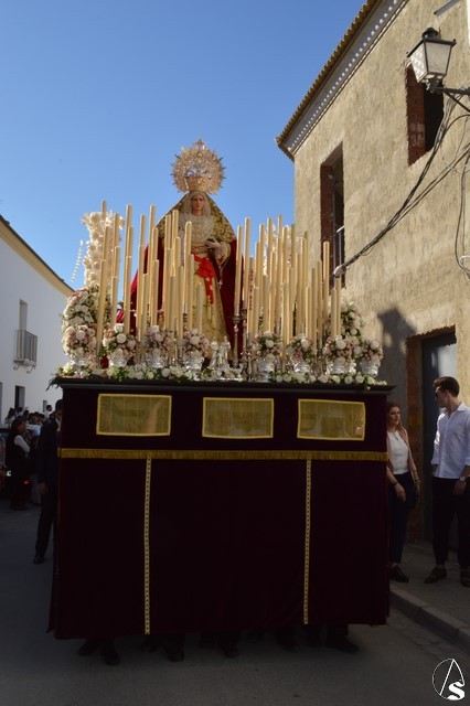 El sol acompañó los inicios de la procesión que estuvo arropada por numerosos devotos. En la Travesía de Fátima la Virgen de la Encarnación fue agasajada con una petalada que llenó de colores la tarde de este domingo. Las notas musicales de la Banda de Música Villa de Osuna acompañaron a la más joven de las imágenes procesionales de la Villa en una procesión que se acercó hasta el Templo Parroquial de Nuestra Señora de Consolación donde fue recibida por las Hermandades que allí radican. Tras este bello momento la Dolorosa de la Encarnación buscó de nuevo su barrio que con fe la espera cada Domingo de Pasión.