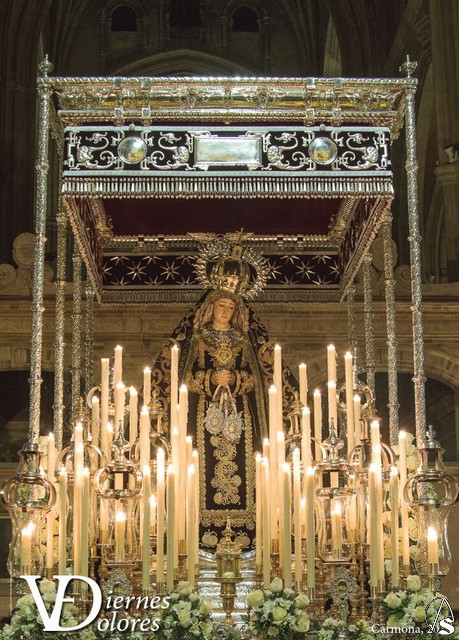 El Coordinador de la realización del palio de María Santísima de los Dolores explicó la simbología que subyace en esta obra recurriéndose al valor bíblico de los números y a las pre-figuras de la Virgen María en el Antiguo Testamento.