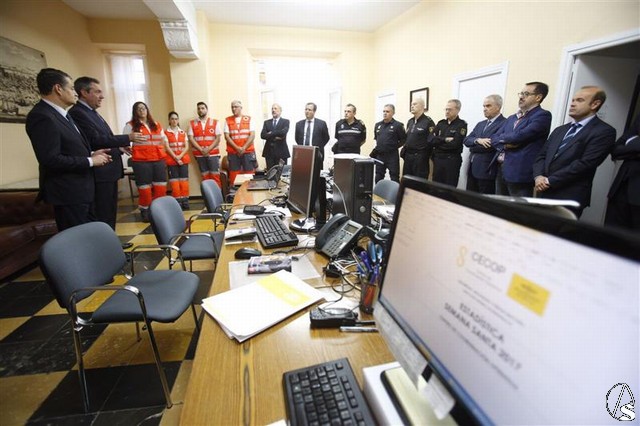 El alcalde de Sevilla, Juan Espadas, y el delegado del Gobierno en Andalucía, Antonio Sanz, han presidido hoy la reunión de trabajo de los integrantes del dispositivo especial de Semana Santa, donde han valorado la coordinación de los distintos servicios y la rápida y eficaz respuesta policial y sanitaria ante los sucesos de la Madrugá, al tiempo que han destacado la eficacia del trabajo coordinado previo para planificar la seguridad en las calles.