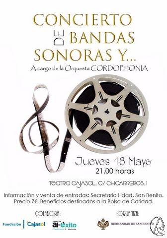 Arte Sacro. La Hermandad de San Benito organiza el jueves 18 de mayo a las 21 horas en el teatro Cajasol, calle Chicarreros, 1, un concierto de bandas sonoras a cargo de la orquesta Cordophonia, cuyos beneficios irán destinados a la bolsa de caridad.