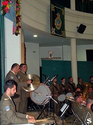 El concierto se realizó a cargo de la Banda de música de la Unidad del Cuartel General de la Fuerza Terrestre, continuadora de la histórica Banda de Infantería del Regimiento de Soria 9 bajo la dirección de su titular, el director y compositor isleño, el Capitán Manuel Bernal Nieto, que recogió la tradición de la Música del Regimiento de infantería “Soria 9 “con el que llegó a Sevilla en el año 1876.