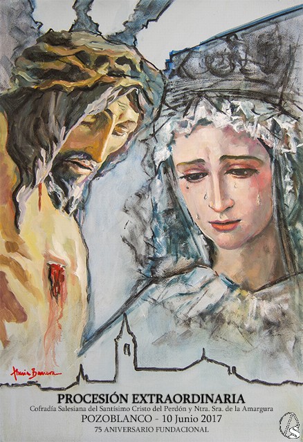 Arte Sacro. La pintora sevillana Nuria Barrera ha pintado el cartel del 75 aniversario de la Cofradia Perdón y Amargura de la localidad cordobesa de Pozoblanco.