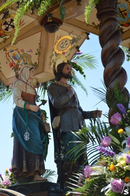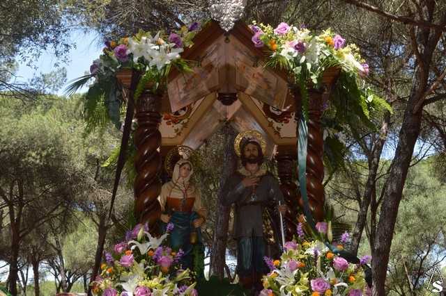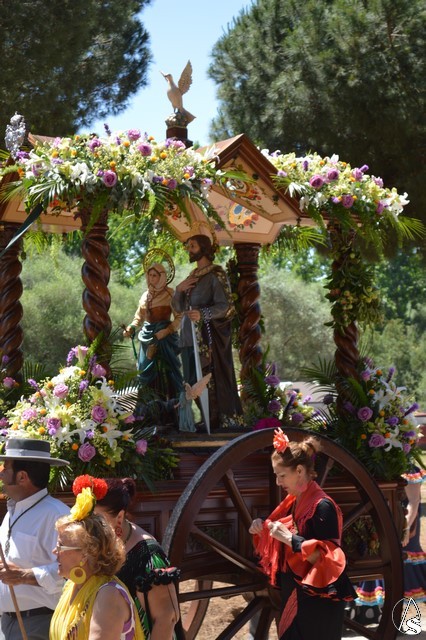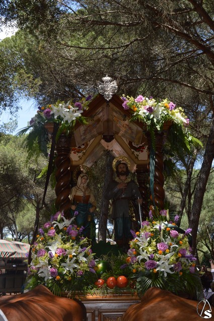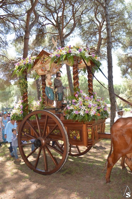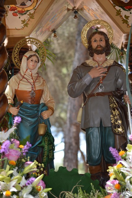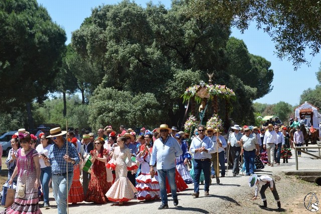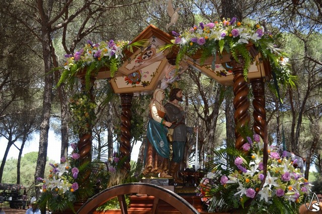Manuel Pinto Montero. Un año más el pueblo de Los Palacios y Villafranca celebró su tradicional Romería en honor de San Isidro Labrador peregrinando hasta el Parque periurbano de La Corchuela donde, desde 1968, se viene celebrando esta tradicional y popular Romería palaciega. Son numerosos los devotos y romeros que acompañan a San Isidro Labrador y a Santa María de la Cabeza en su peregrinar en la hermosa y calurosa mañana romera. La imagen de San Isidro es obra de los talleres de Olot de finales de 1953 o principios de 1954 y fue adquirida por la Hermandad sindical de Labradores y Ganaderos.