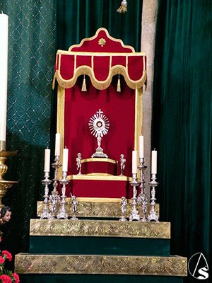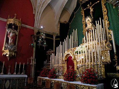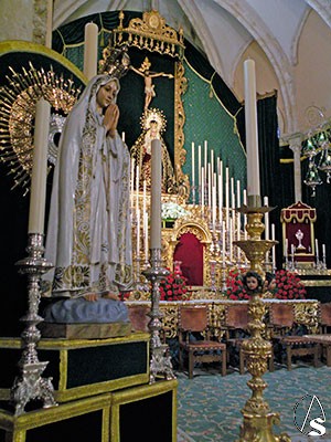Al gran aparato de ceras y flores que compone el majestuoso altar de cultos, que hay que añadir una cuidada ceremonia desde el punto de vista litúrgico, como la celebración diaria de la santa misa, en la que el oficiante predica la Palabra de Dios y en la que la Hermandad pone sobre su altar a modo de ofrenda, la vida y el trabajo de todo un año.
