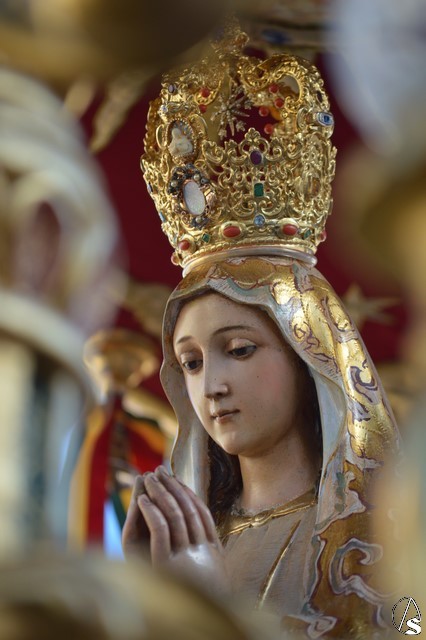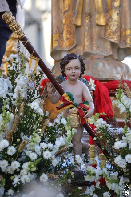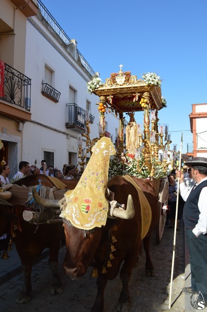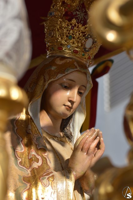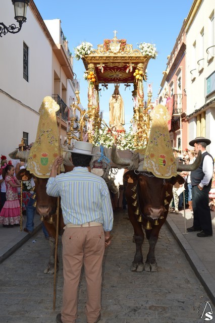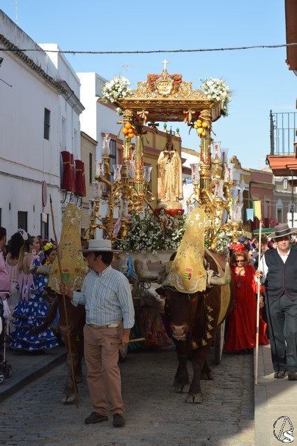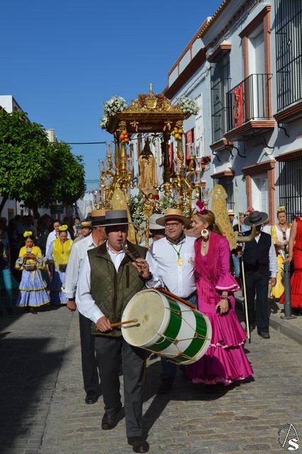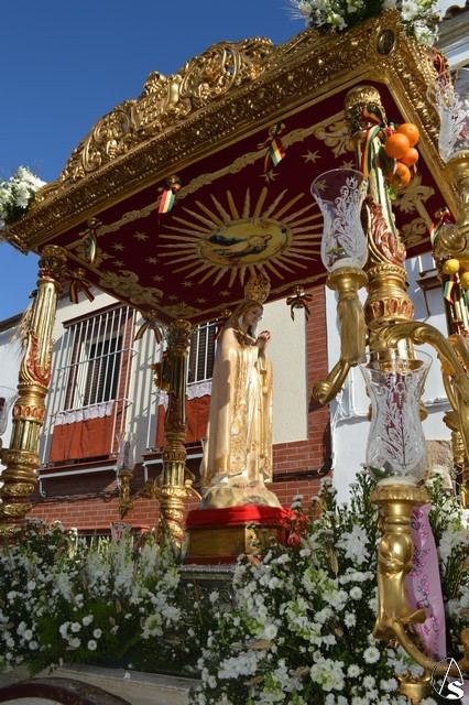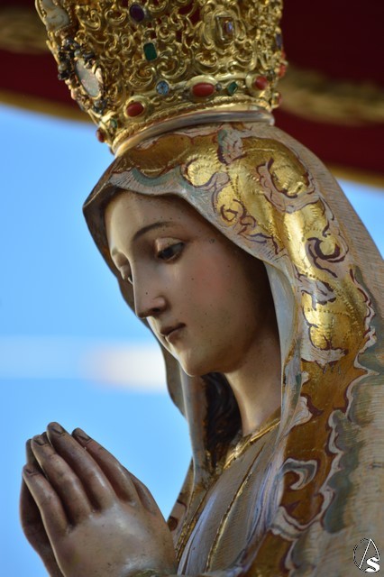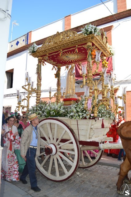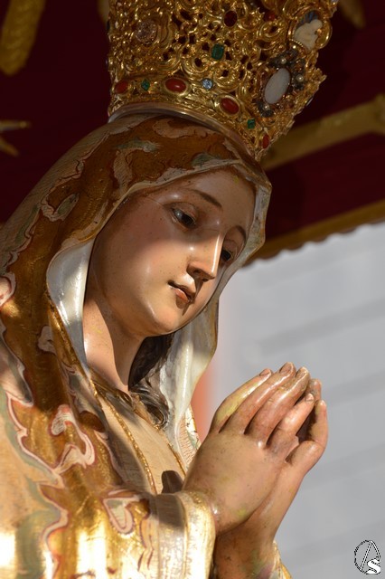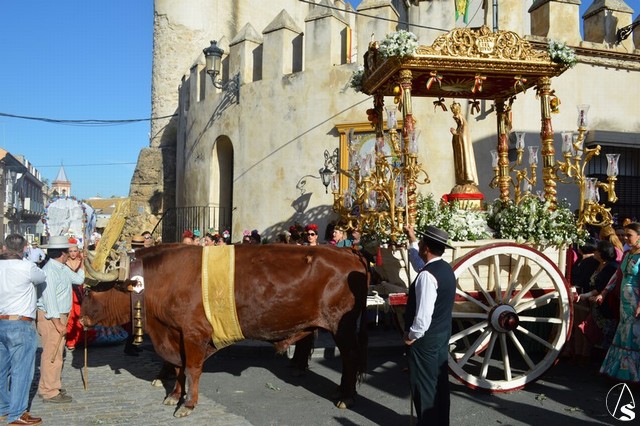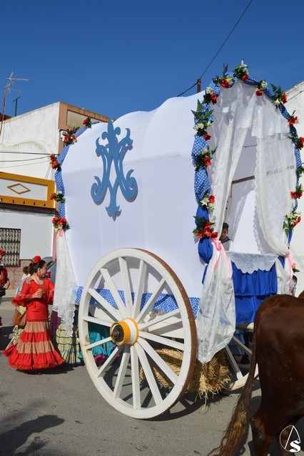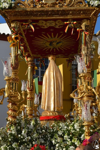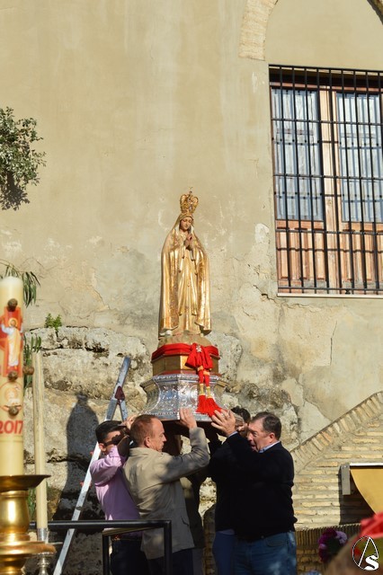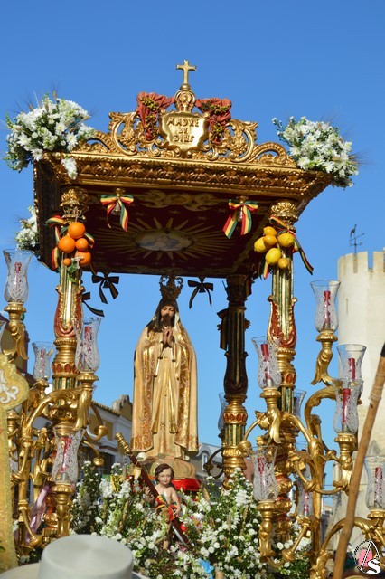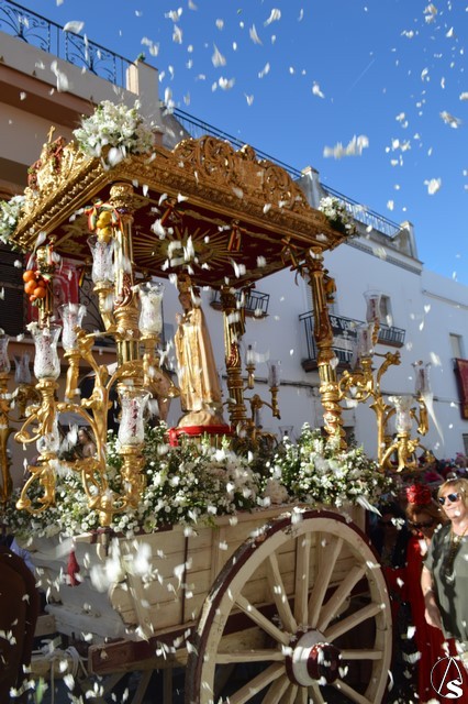 Este año la Misa de Romeros se ha celebrado a los pies del castillo de Los Molares, en un hermoso altar montado por todos sus hermanos y devotos. A los pies de la Santísima Virgen se encontraban los pastorcitos: Francisco, Jacinta y Lucía, recreando una estampa que hace ahora cien años tenía lugar en Cova de Iría. Tras la Misa de Romeros la Santísima Virgen fue bajada de altar efímero para ser entronizada en su carreta despertando el fervor de todo un pueblo. Entre vivas y ovaciones la Santísima Virgen recorrió los pocos metros que separaban el altar de la carreta entre un inmenso gentío.