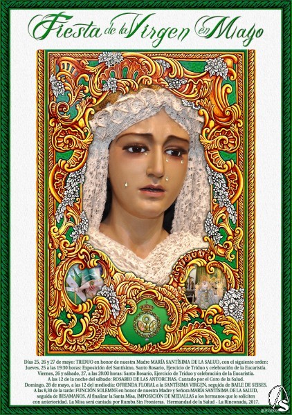 Arte Sacro. El próximo jueves comienza el triduo a María Santísima de la Salud hasta el sábado día 27 de mayo comenzando a las 20:30 horas en la parroquia de Nuestra Señora de las Nieves y predicado por Marcelino Manzano, delegado de hermandades y cofradías de Sevilla.