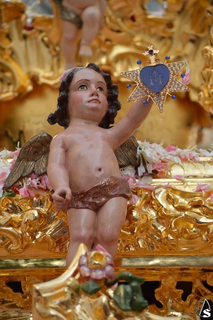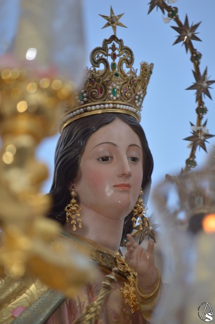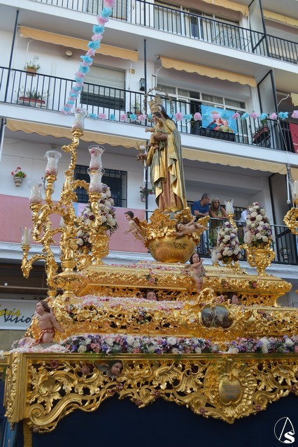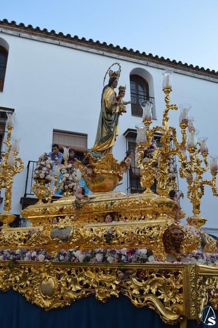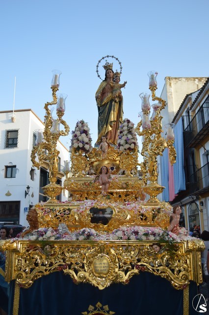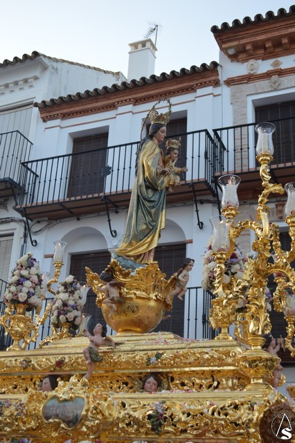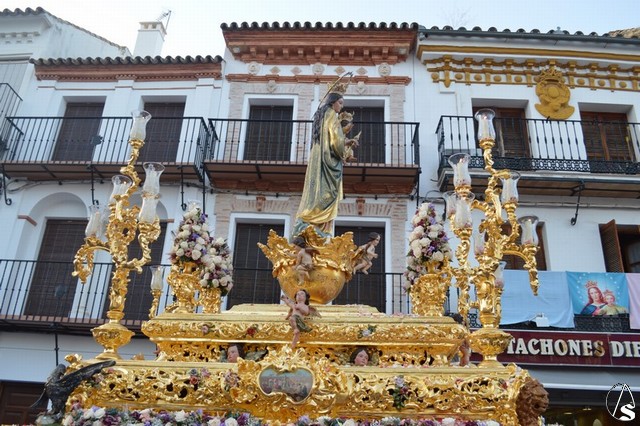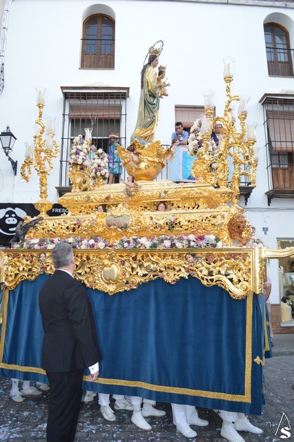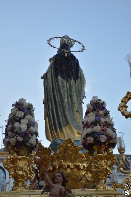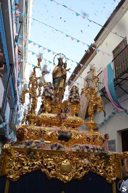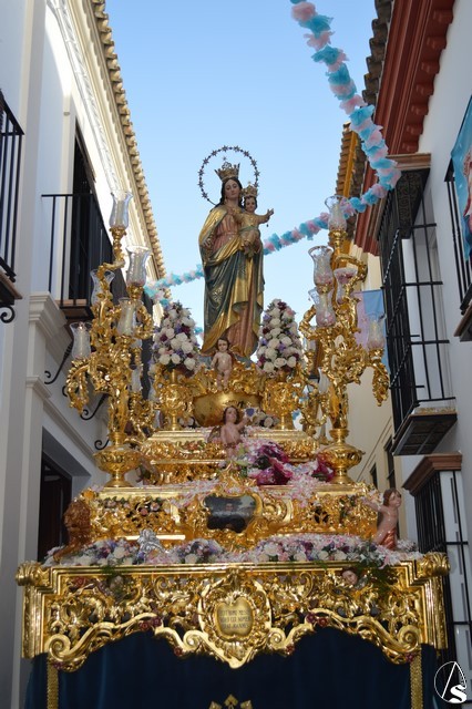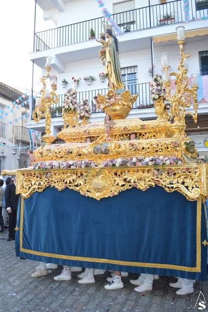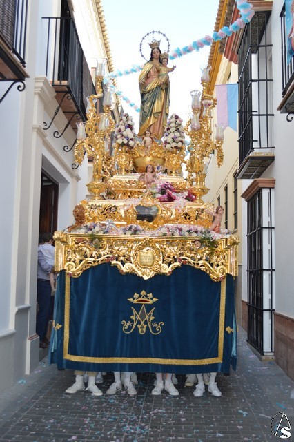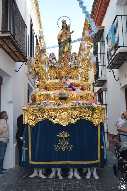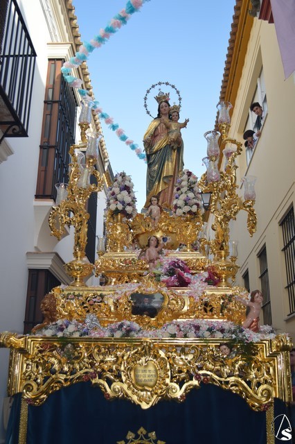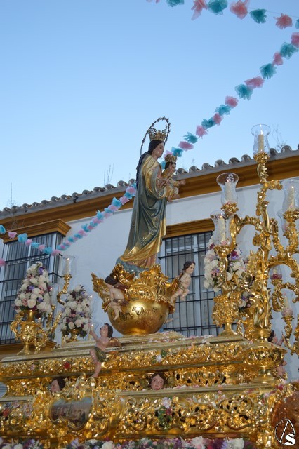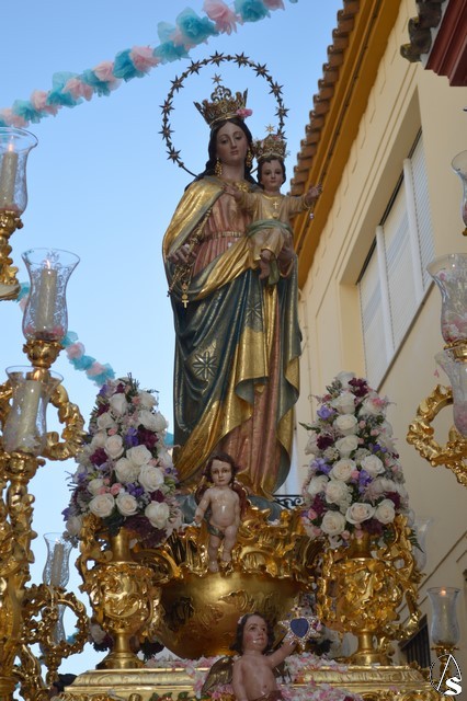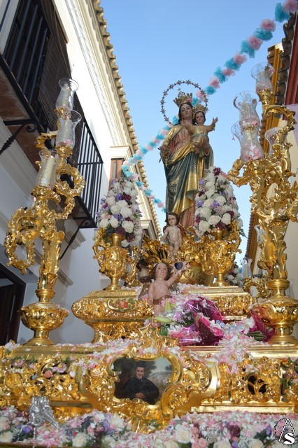 Un largo cortejo de niños y jóvenes de Utrera, así como el Equipo Educativo del Colegio o las distintas Hermandades de la localidad acompañaron a la Santísima Virgen que procesionó sobre paso de madera tallado y dorado, estando alumbrada por candelabros de guardabrisas. Este paso fue realizado en el año 1912.