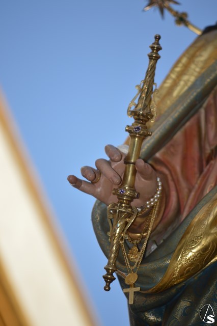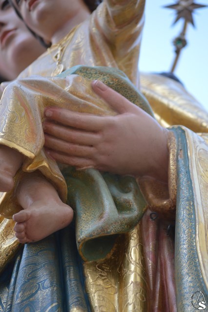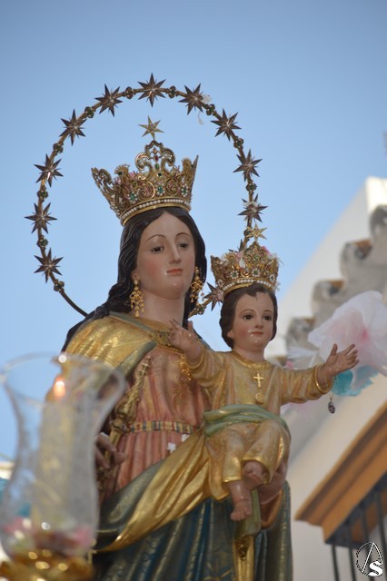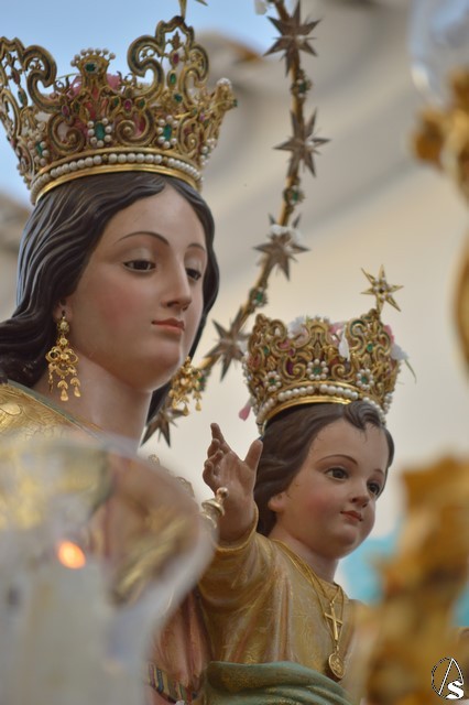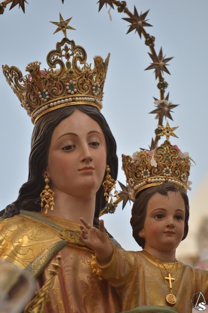La Santísima Virgen y el divino Infante lucieron sobre sus sienes las coronas de oro, impuestas en el año 1981 con motivo de la Coronación Canónica de la venerada imagen.