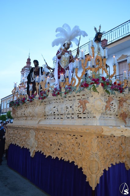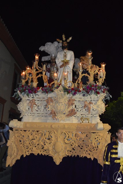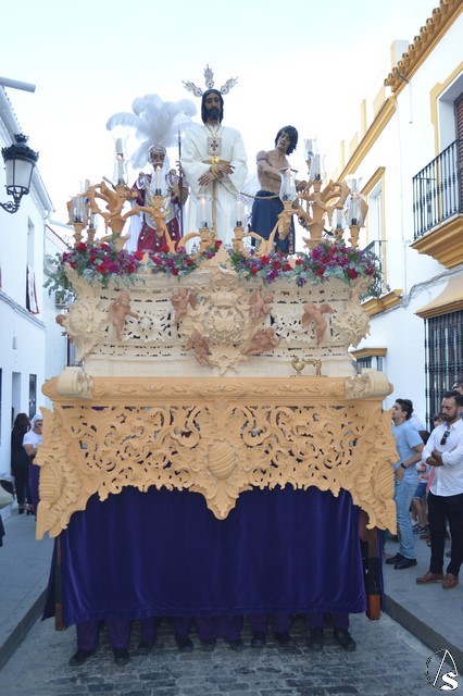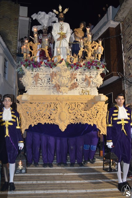 Ya con la luna como testigo Nuestro Padre Jesús Cautivo buscó distintos rincones de Las Cabezas de San Juan. Hermosa fue la bajada por la calle Manzano, una cuesta con escalones, donde de nuevo el esfuerzo y el trabajo de sus costaleros fue recompensado con la emoción todos los presentes en ese momento.