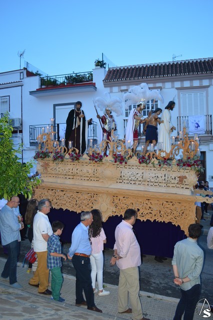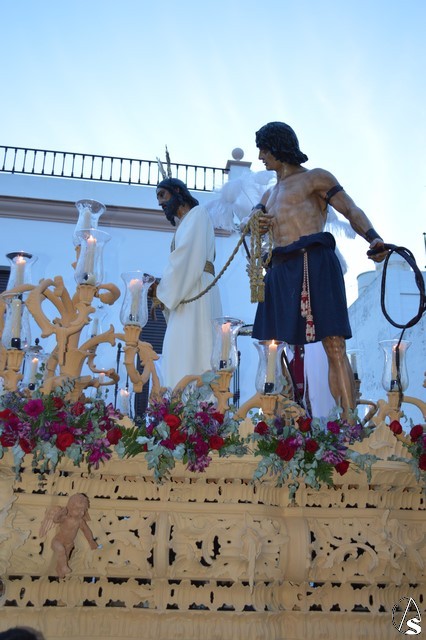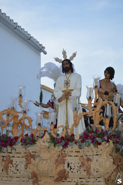 Con las últimas luces del día el Señor Cautivo subía la calle Antonio Machado buscando los aledaños de la Parroquia de San Juan Bautista. Con paso firme y seguro los costaleros portaron al Señor llevándolo hasta el punto más alto de la localidad. De una sola chicotá subió la calle Francisco de Vargas donde las lágrimas y los sentimientos se hicieron presentes en numerosos hermanos que emocionado contemplaban la subida de Nuestro Padre Jesús Cautivo. Gran esfuerzo el de sus costaleros, que a los sones de la banda del Rosario de Cádiz, llevaron al Señor hasta la Parroquia de San Juan Bautista donde las numerosas hermandades que lo habían acompañado se despidieron.