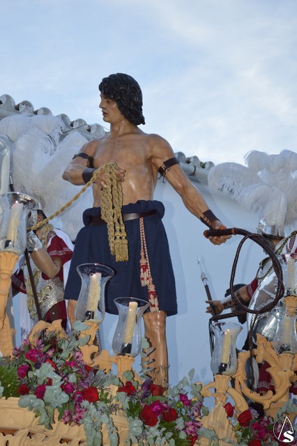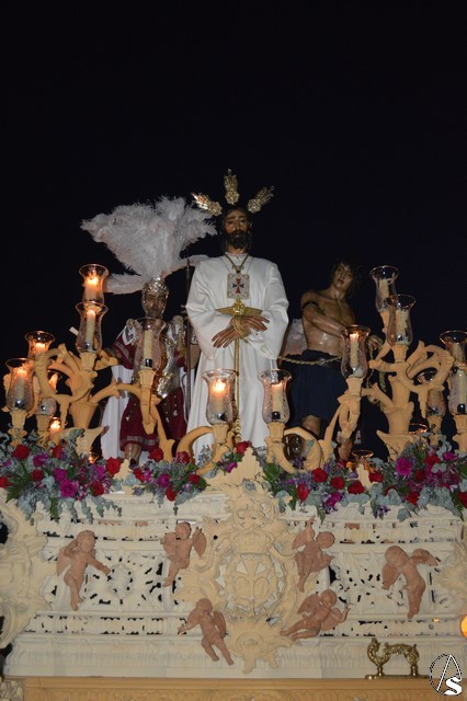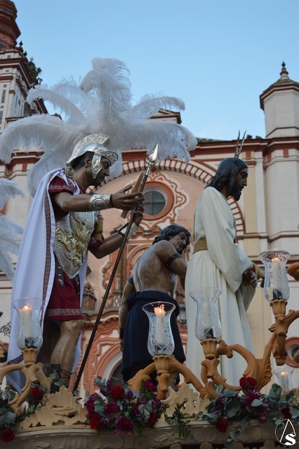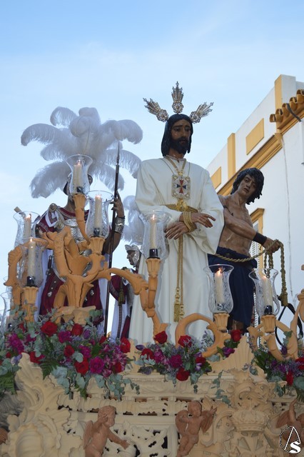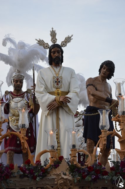 La venerada imagen del Señor es obra de Juan Bernabe Britto tallado en el año 1956. La imagen del Cautivo procesionó como cada tarde de Miércoles Santo en su paso de misterio acompañado de un sayón, dos soldados romanos y Judas Iscariote, todas obras del escultor Manuel Ramos Corona. En sus inicios, allá en 1942, la Hermandad dio culto a otra imagen a la de Nuestro Señor Atado a la Columna, una obra del siglo XVII y que fue sustituida en los años cincuenta por esta imagen de Jesús Cautivo, ambas imágenes pudieron contemplarse estos días en la Parroquia de San Roque.