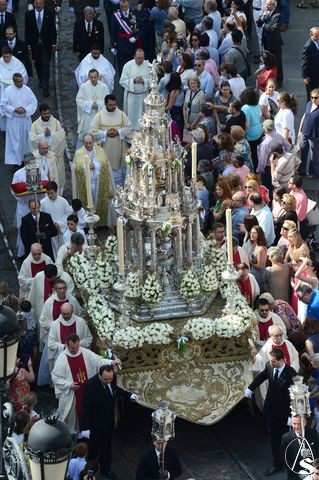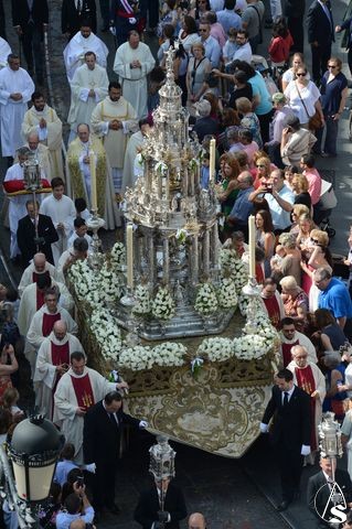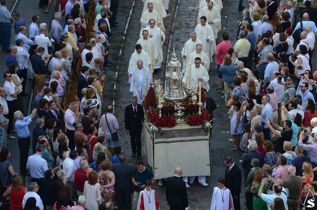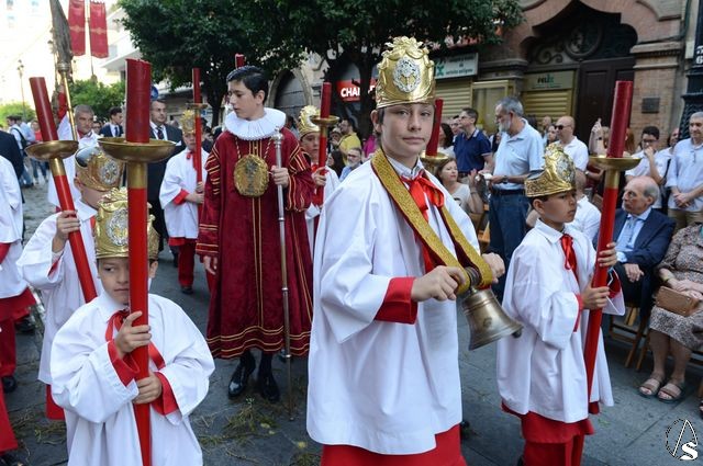 Arte Sacro. La procesión del Corpus Christi de este año ha venido marcada por las altas temperaturas que hemos tenido en nuestra ciudad, recuerden que estamos en alerta amarilla, cosa que no se ha notado en el público asistente que ha sido, mas o menos, el mismo que en años anteriores.