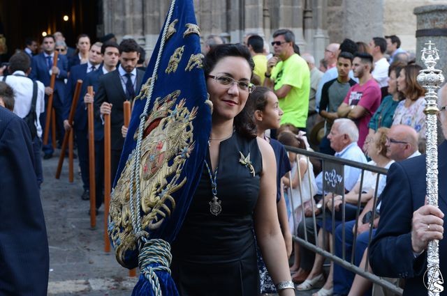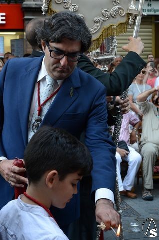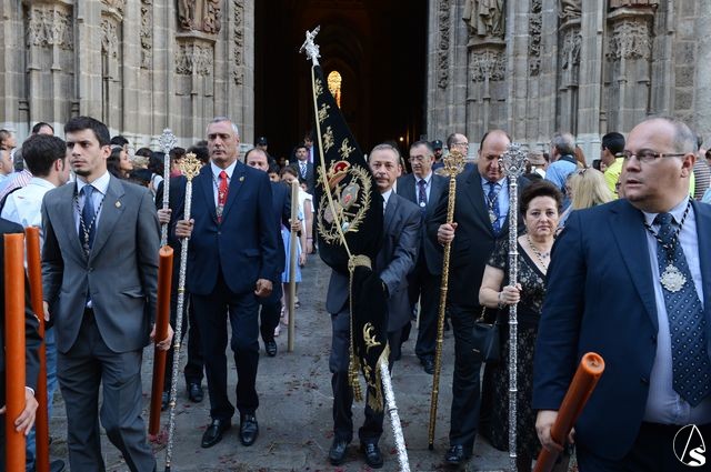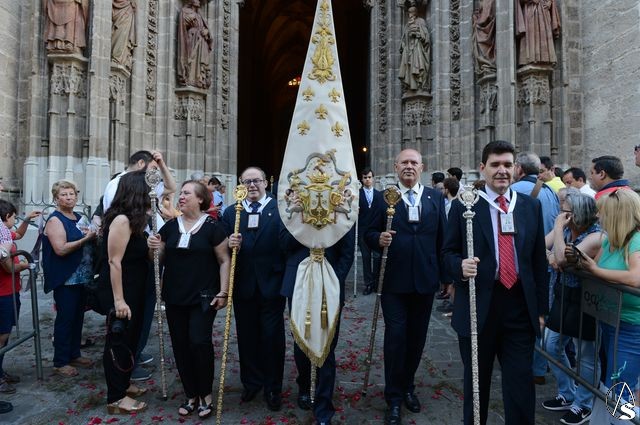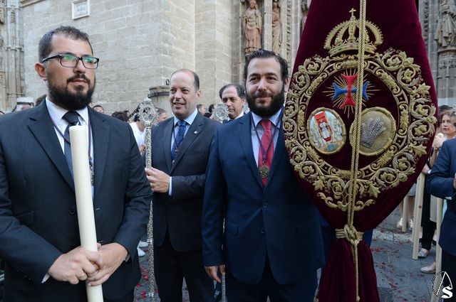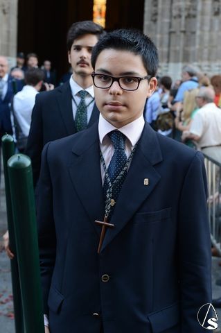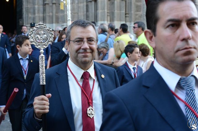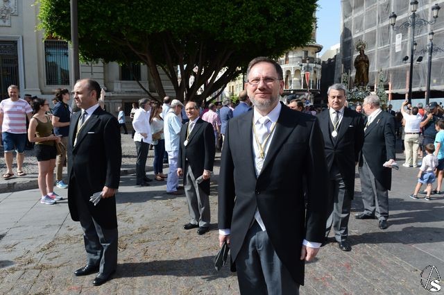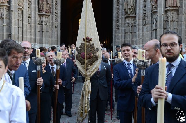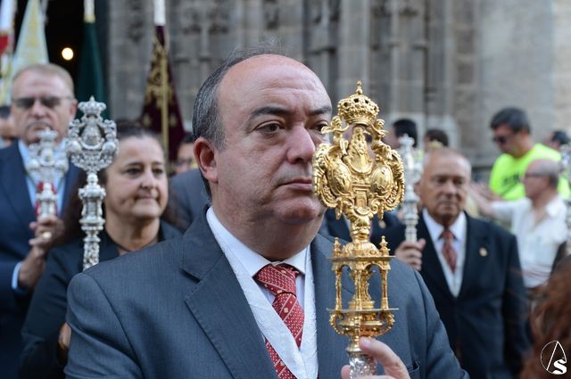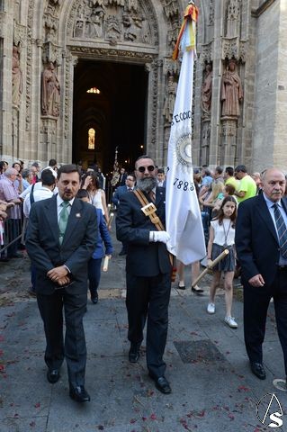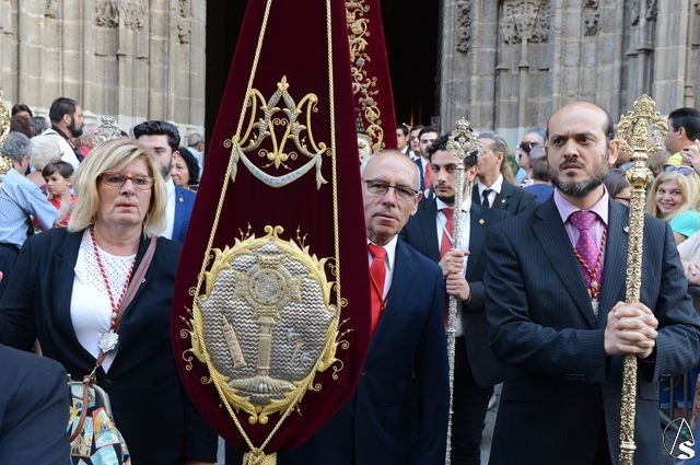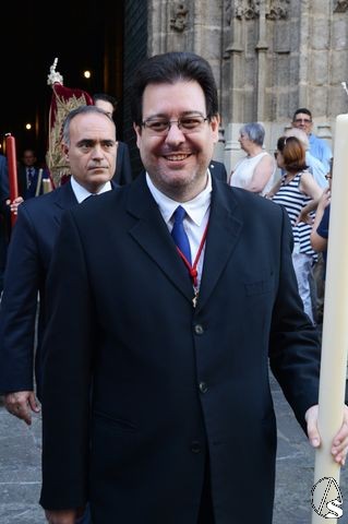 Abriendo el cortejo los niños carráncanos de la Sacramental del Sagrario con el Guión Sacramental. Tras ellos, las representaciones del as hermandades de glorias, penitencia y sacramentales por orden de antigüedad. También representaciones de las distintas Cámaras, jefatura de Policía, Colegios Oficiales, Ateneo, Reales Academias, Universidad, Cuerpo Consular, Audiencias, Órdenes, Consejo de Cofradías, Delegaciones Diocesanas, Cáritas, Seminario, Ordenes Terceras, Diáconos, Comunidades Religiosas, Tribunal Eclesiástico, Clero Secular, Curia Diocesana, Universidad de Curas, Maestranza de Caballería, Niños Seises, Cabildo Catedral y Coral.