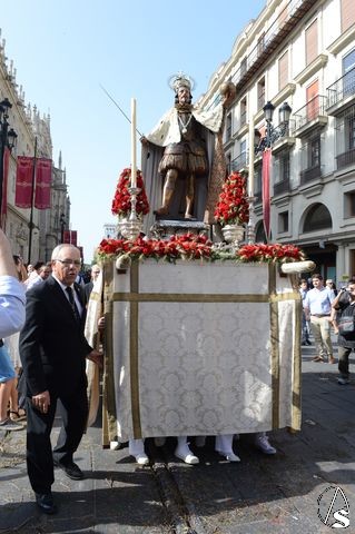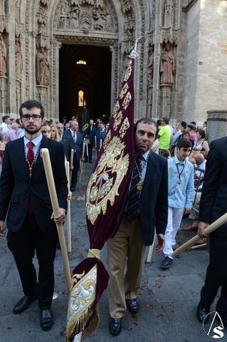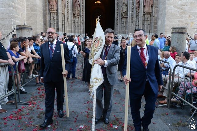 La procesión comenzó a salir a las 08,15 horas desde la puerta de San Miguel, mientras la eucaristía empezaba un cuarto de hora después.
