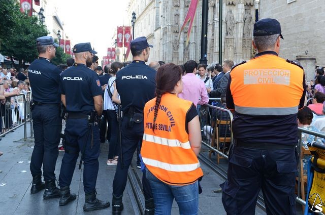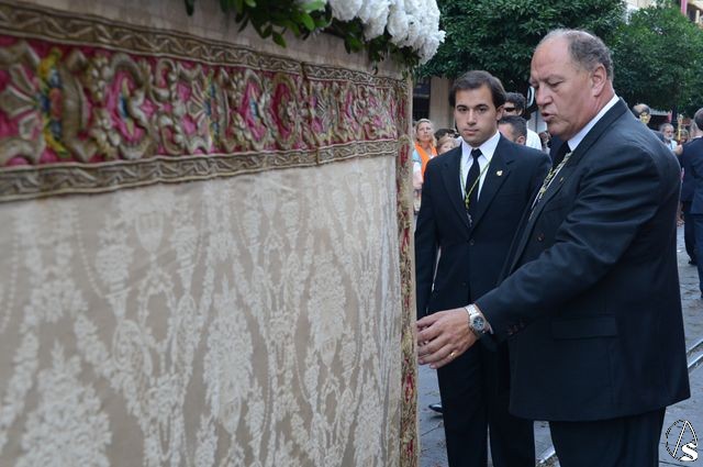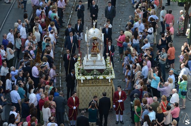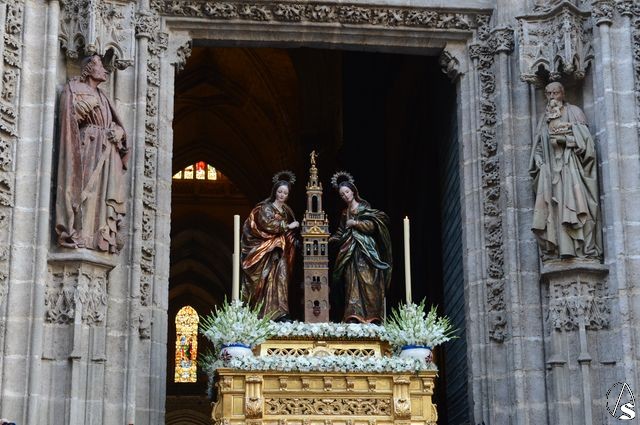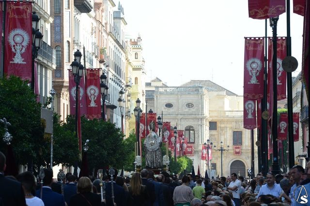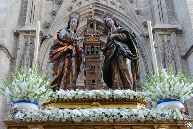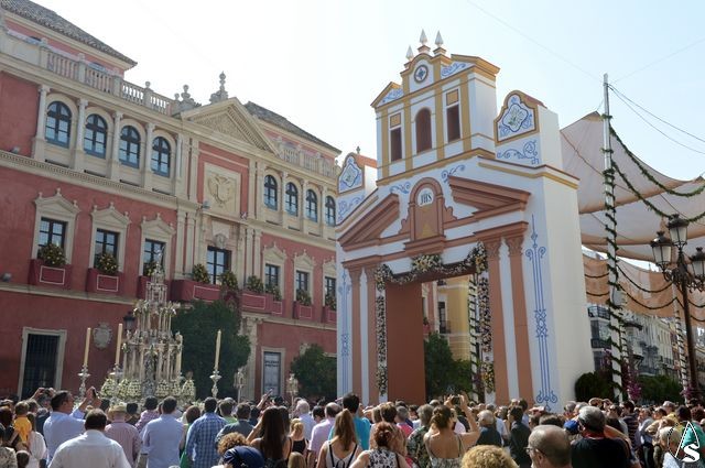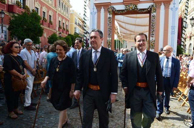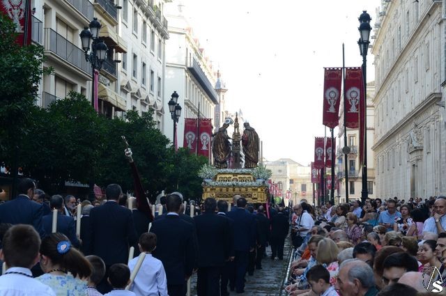 Con respecto a los pasos, el de Santa Ángela de la Cruz está a cargo de la hermandad de la Amargura, el de las Santas Justa y Rufina por la hermandad de San Gonzalo, este año, al ser rotatorio por las hermandades de Triana; el de San Isidoro, por la hermandad del mismo nombre, el de San Leandro por la hermandad de la Macarena, el de San Fernando por la hermandad de la Redención, el de la Inmaculada Concepción por la hermandad del Silencio, el de el Niño Jesús por la Sacramental del Sagrario, el de la Santa Espina por la hermandad del Valle, y el de la Custodia por el Consejo de Cofradías, siendo exornado por Manuel Palomino con uvas y espigas donadas por la familla Góngora de Villanueva del Ariscal.