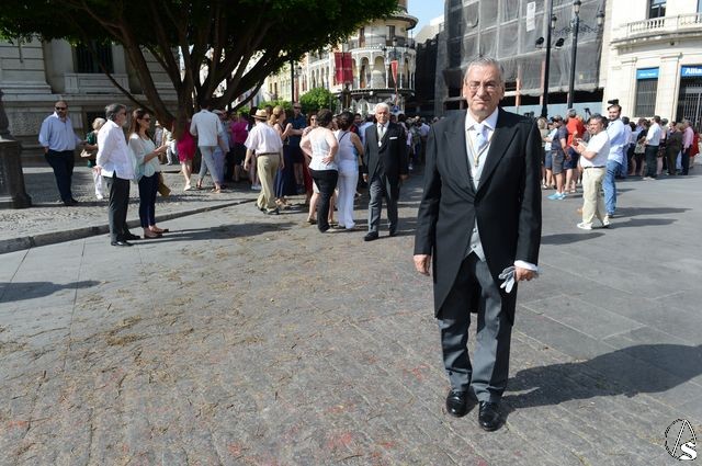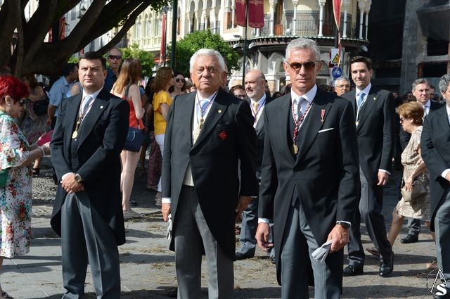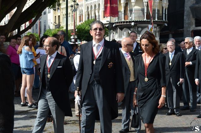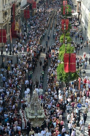Tras el paso de la Custodia, el arzobispo Asenjo, acompañado del obispo auxiliar y del Dean de la Catedral, primeras autoridades, corporaciones municipal y provincial y el ejercito.
