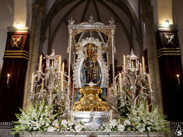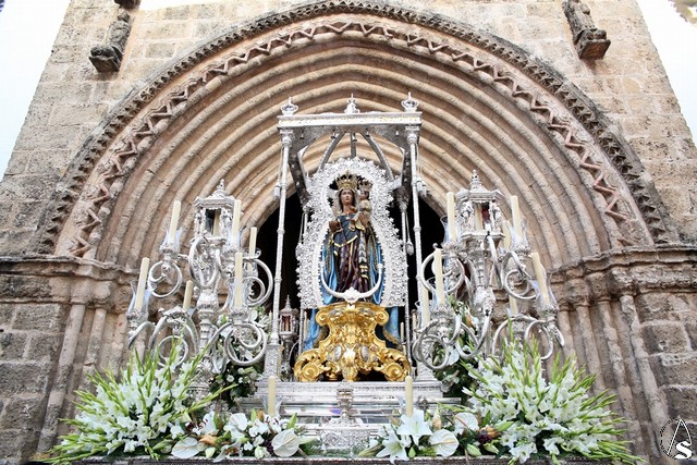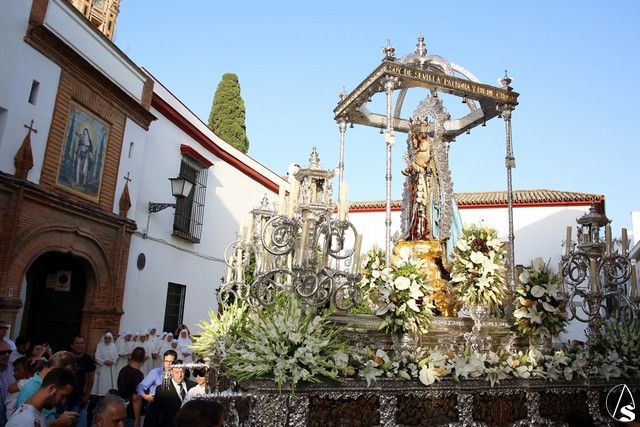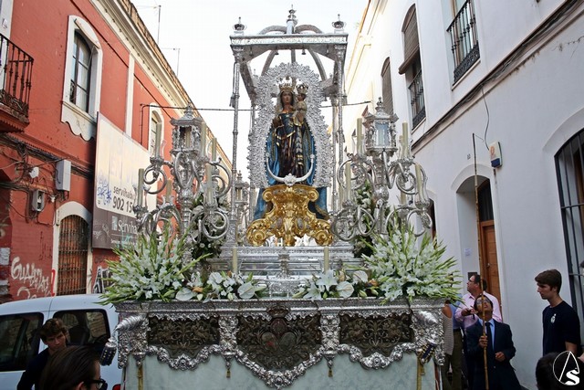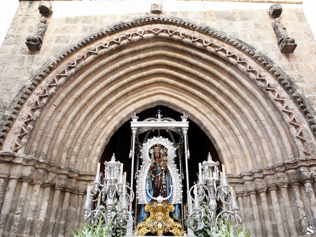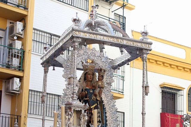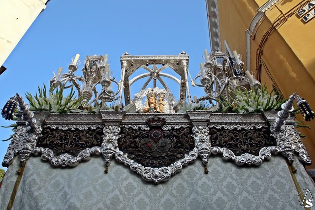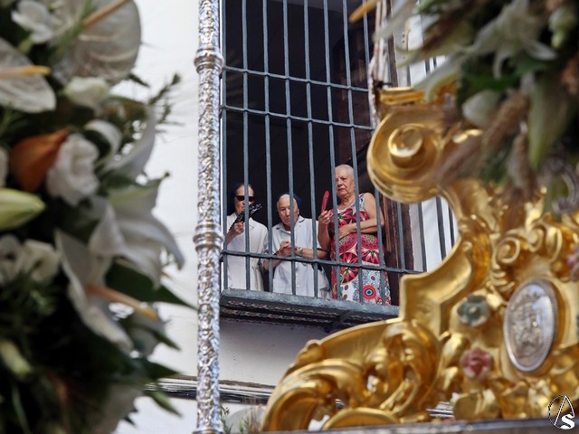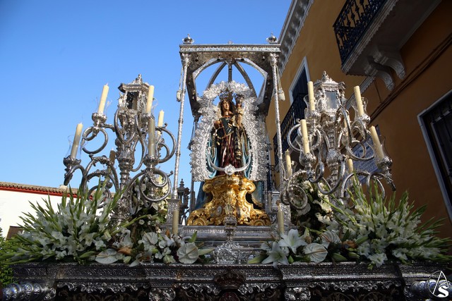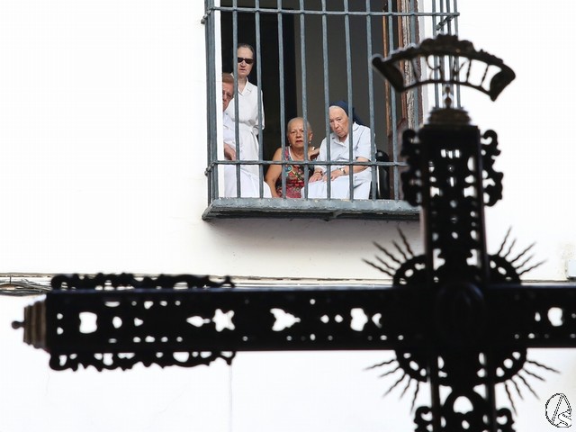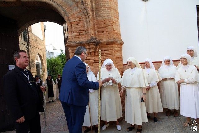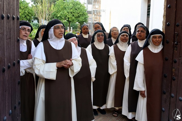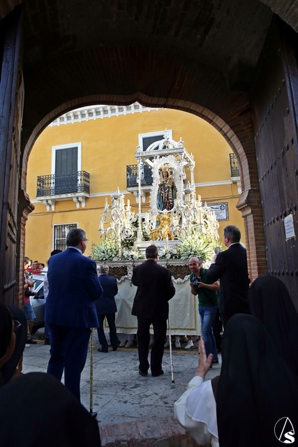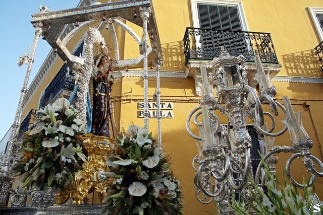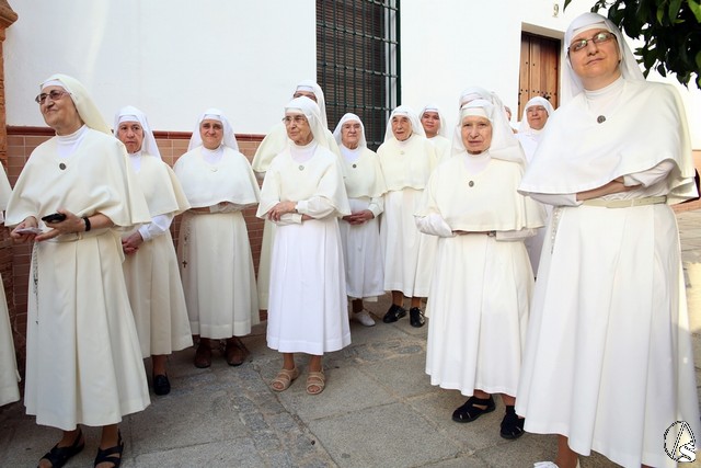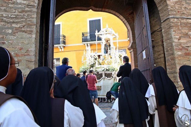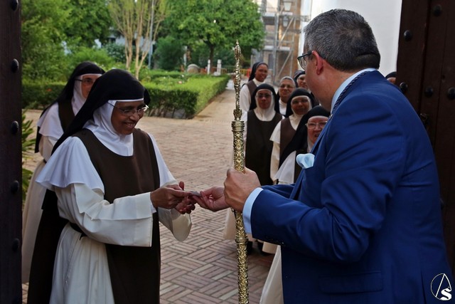 En el convento de Santa Paula fue uno de los momentos entrañables del recorrido, donde las monjas le cantaron a la Santísima Virgen el Salve Madre. El acompañamiento musical estuvo a cargo de la Sociedad Filarmónica Nuestra Señora del Carmen de Salteras.