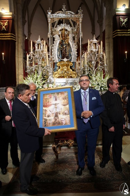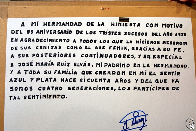 Antes de la salida desde el templo de San Julián, tuvo lugar la entrega de un cuadro con un montaje fotográfico con motivo del 85 aniversario de los tristes sucesos acontecidos en el año 1932, este recuerdo es en forma de homenaje a todas las personas que hicieron resurgir de las cenizas a la hermandad de la Hiniesta.