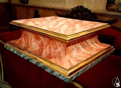 Un extraordinario trabajo, tanto en el marmoleado como en las partes doradas en oro fino.