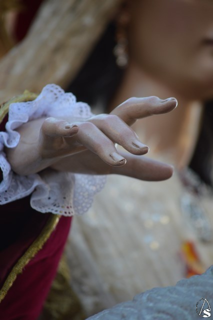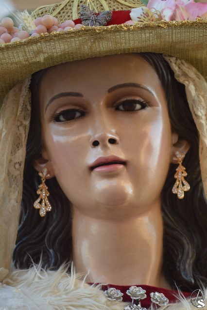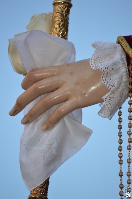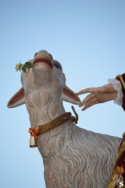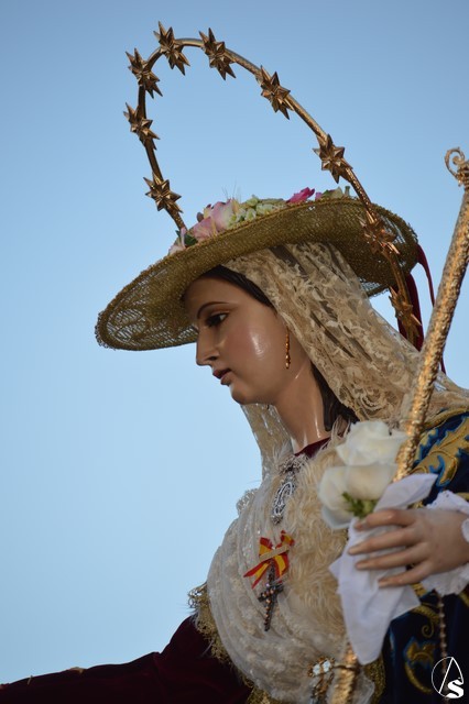 Manuel Pinto Montero. La bendita imagen de la Divina Pastora de las Almas abandonó el pasado sábado su coqueta Capilla de la calle Olivo para pasear por unas horas por parte de la feligresía de San Agustín sobre un sencillo paso exornado con gran variedad de flores y alumbrada por candelabros de guardabrisas en las esquinas.