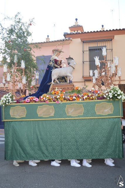 Acompañó en esta salida procesional de la Divina Pastora las Hermandades y Asociaciones de la Parroquia de San Agustín, así como representaciones de las Hermandades pastoreñas de Cantillana y Palmete.