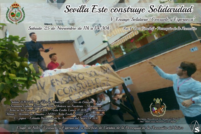 El sábado 25 de noviembre de 11 a 14,30 horas tendrá lugar el "V Ensayo Solidario Consuelo y Esperanza". Acompaña la A.M. Ntro. Padre. Jesús Nazareno de La Algaba.