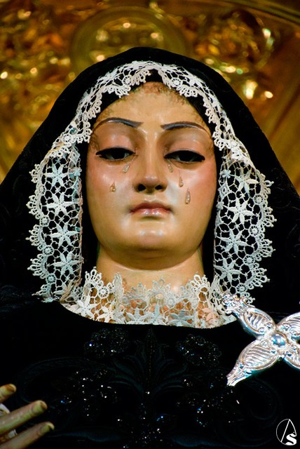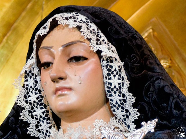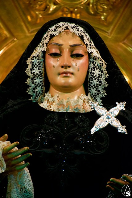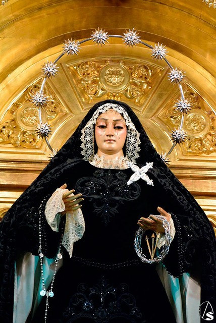 Disfruten de esta antigua imagen dolorosa de Nuestra Señora de los Dolores en su Soledad Coronada tan singular.