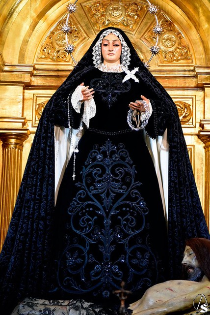 Provincia. La Virgen de los Dolores en su Soledad Coronada, de Alcalá del Río ataviada para el mes de noviembre