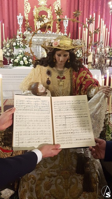 Arte Sacro. La Hermandad del Redil Eucarístico de la Divina Pastora de las Almas coronada de Capuchinos, celebró el pasado sábado, día 6 de enero, solemne función con motivo de la festividad litúrgica de la Epifanía del Señor. A su conclusión, el Coro de la Hermandad, hizo entrega de las partituras de una nueva marcha procesional, titulada "La Pastora de Sevilla" obra del conocido compositor Juan Manuel Velázquez Ruiz.