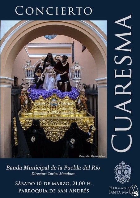 Arte Sacro. La Banda municipal de La Puebla del Río ofrecerá este sábado, día 10 de marzo, un concierto de marchas procesionales en la Parroquia de San Andrés, sede de la Hermandad de Santa Marta, a partir de las 21 horas.