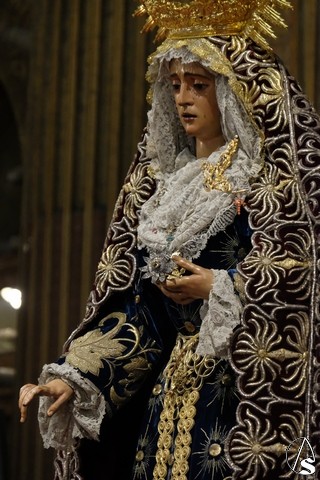 Arte Sacro. En la tarde de ayer, la Hermandad del Valle tuvo que suspender el besamanos que se venía celebrando en el altar principal de la iglesia de la Anunciación a la Virgen del Valle, debido a las filtraciones de agua en la cúpula del templo. Poco tiempo después, el equipo de priostía trasladó a la Virgen ubicándola delante del altar lateral, ante las imágenes de los Cristos de la Coronación de Espinas y con la Cruz al Hombro, donde permanecerá en besamanos hoy sábado y mañana domingo, de 10 a 14 y de 17 a 21 horas.