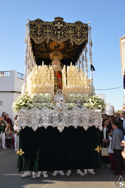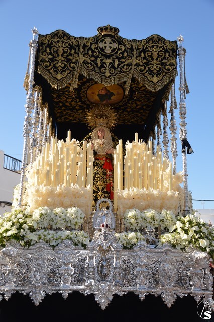 En el primero de los pasos procesiona el Santísimo Cristo de la Vera Cruz obra de Antonio Castillo Lastrucci del año 1940. Bajo bello palio procesiona la imagen de Nuestra Señora de los Remedios, obra anónima del siglo XVI o XVII y que goza de gran fervor en este pueblo palaciego.
