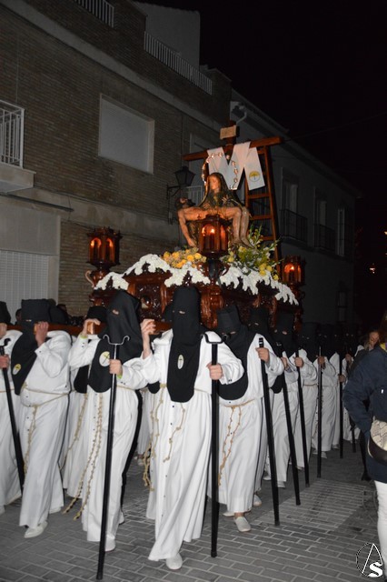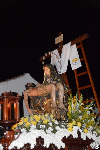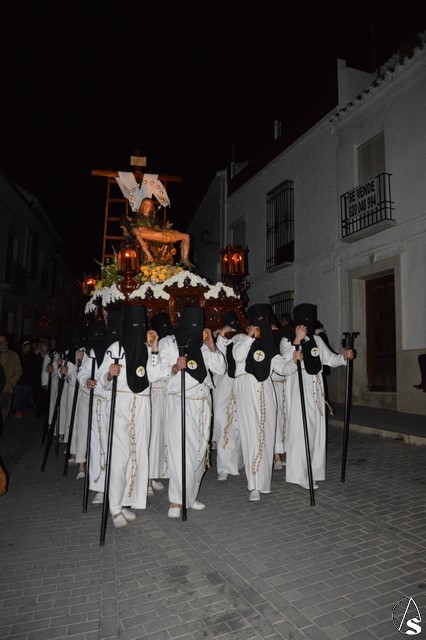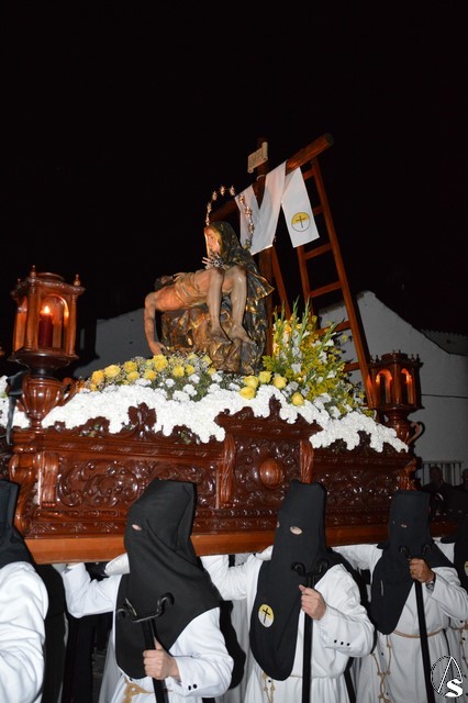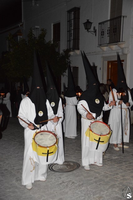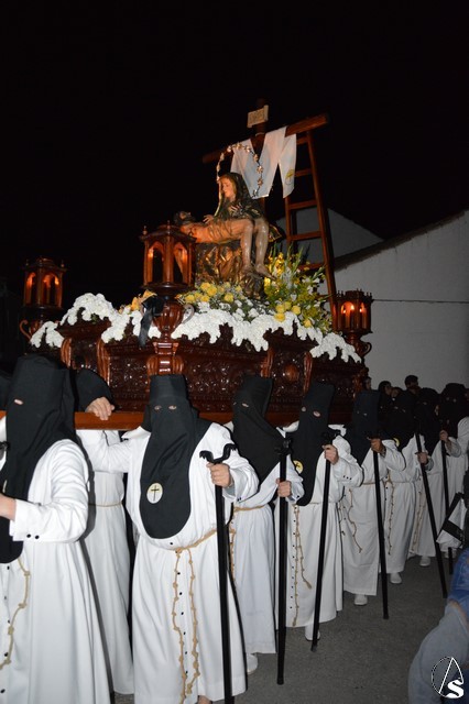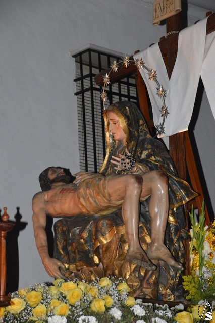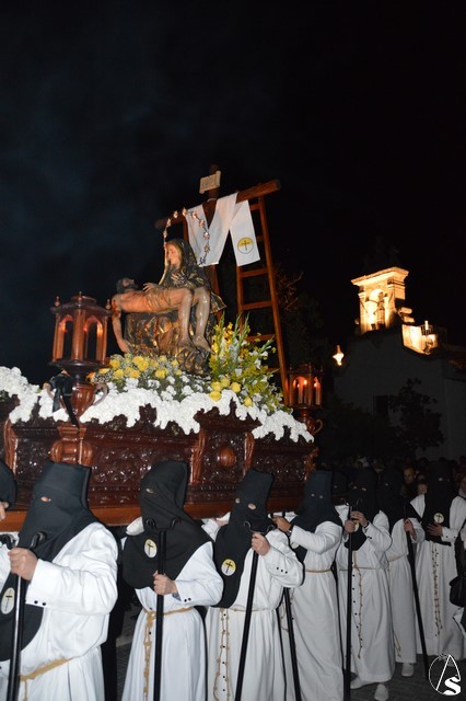 Manuel Pinto Montero. Desde la Ermita de Santa Ana se inicia la Estación de Penitencia de la Hermandad de las Angustias que recorre las calles de Estepa iluminadas solo por la luz de la luna. Un único paso procesiona esta cofradía fundada en el año 1955.