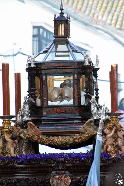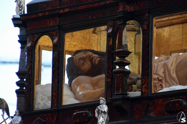 La imagen del Cristo Yacente es obra de Manuel Martín Nieto de 2002 y la urna en la que procesiona es de carey con aplicaciones en nácar y plata del siglo XVIII. La Virgen de los Dolores y en Soledad es una talla anónima, remodelada por Castillo Lastrucci en 1923 y resdtaurada por Sebastián Santos en los años 50.