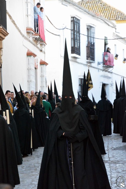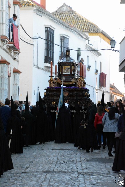Luis M. Fernández. La hermandad de Veracruz sale dos veces en la Semana Santa utrerana. El Viernes Santo lo hace con Nuestro Padre Jesús Atado a la Columna y el Sábado Santo con el Santo Entierro del Santísimo Cristo Yacente. En ambas ocasiones, Nuestra Señora de los Dolores y en Soledad acompaña a su Divino Hijo, haciéndolo el sábado de riguroso luto, bajo palio negro y con las manos cruzadas.