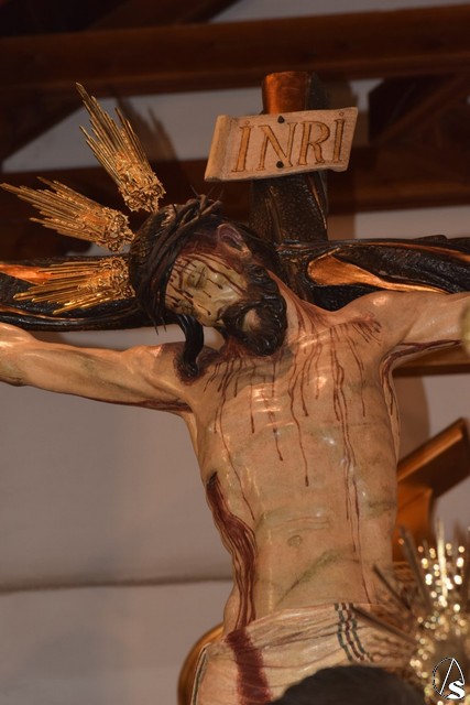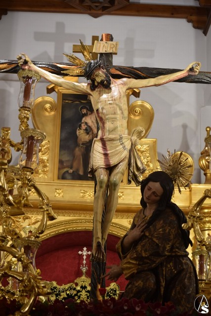 Procesionan el Santísimo Cristo de la Vera Cruz, obra de autor anónimo atribuida al imaginero flamenco Roque Balduque y fechada en 1550. A sus pies una interesante imagen de Santa María Magdalena, obra de autor anónimo cuyas características escultóricas la sitúan en el siglo XVII dentro del circulo de Pedro Duque Cornejo o al de Roldán, más concretamente al de su hija Luisa, La Roldana.