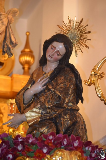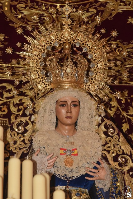 María Santísima de la Soledad Coronada procesiona bajo palio y es obra del imaginero Antonio Dubé de Luque realizada en 1972.