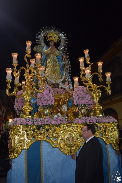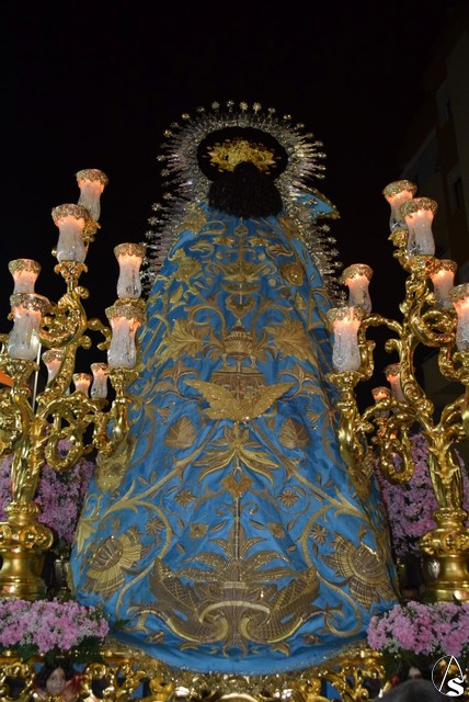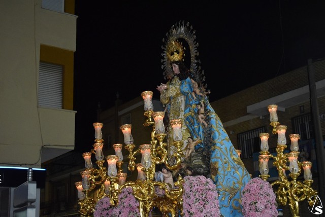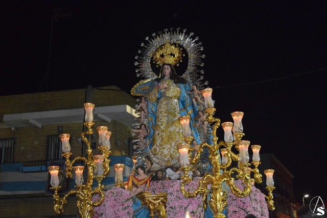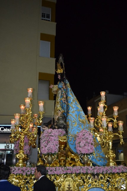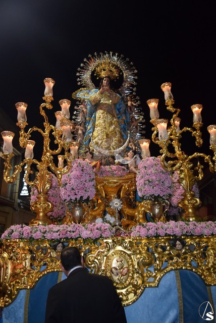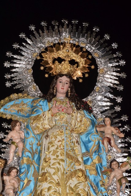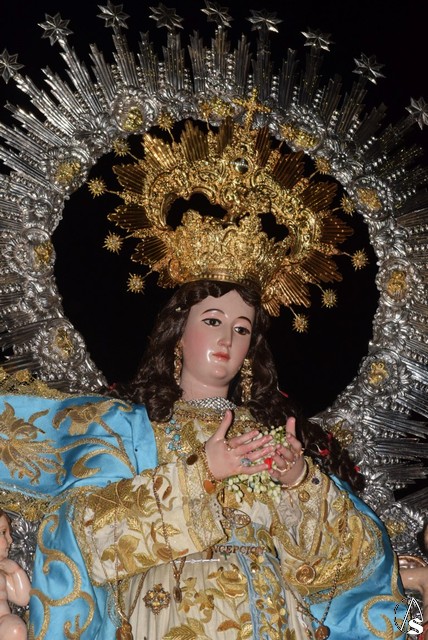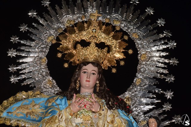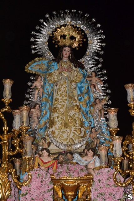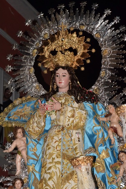 Desde el templo de la Concepción a las siete de la tarde salió la venerada patrona a bendecir a su pueblo, en su paso dorado y acompañada por todos sus fieles y devotos que durante todo el recorrido con vítores la aclamaban y ofrecían lluvias de pétalos.