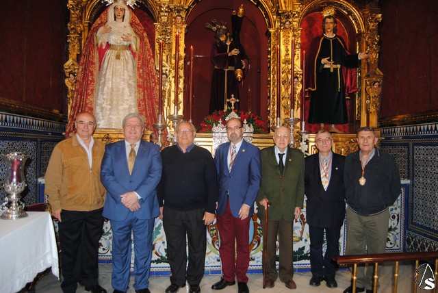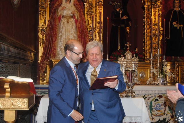 El Presidente de la Sección, dirigió una breves palabras para motivar la entrega, dando en primer lugar las gracias al Hermano Mayor, por permitir que se llevara a cabo dicha entrega en esa misa de Hermandad, haciendo ver a los presentes que este acto se ha realizado en algunas ocasiones anteriores en la casa del propio exaltador, pero que se hacía en el marco privilegiado de la Capilla Sacramental de Nuestro Padre Jesús Nazareno, porque ésta es su casa, la Hermandad con la que se siente íntimamente identificado el señor Mallado Rodríguez, y por la que ha trabajado incansablemente durante toda su vida, desarrollando y poniendo todas sus potencialidades al servicio de la misma.