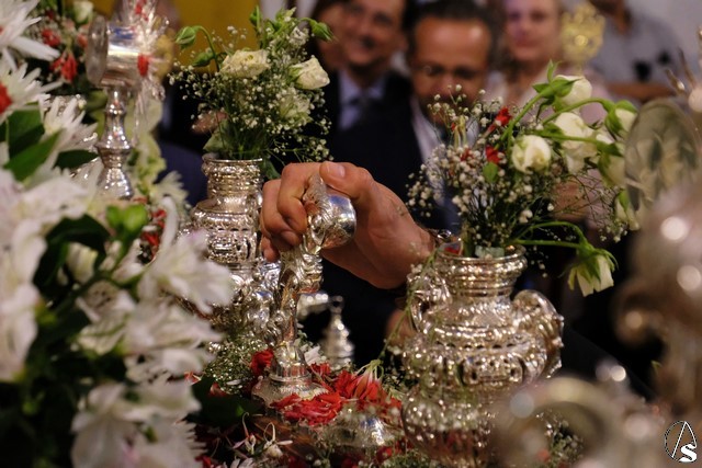 Además del rostrillo de la Santísima Virgen confeccionado en tisú de plata sobre seda beige por la firma DEARTE, estrenaba nuevos puños de encaje de tambor del siglo XIX y Rosario realizado por artesanos del Rosario.