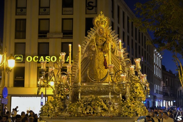 Sobre las 20:30 horas, la Virgen salía por la puerta que da a la Plaza de San Andrés, cuyo paso mandaban los capataces Antonio Franco y Rufino Madrigal. En la revirá de la calle García Tassara a Daoiz, le fue ofrecida a la Virgen una gran petalada desde la azotea del edificio colindante.