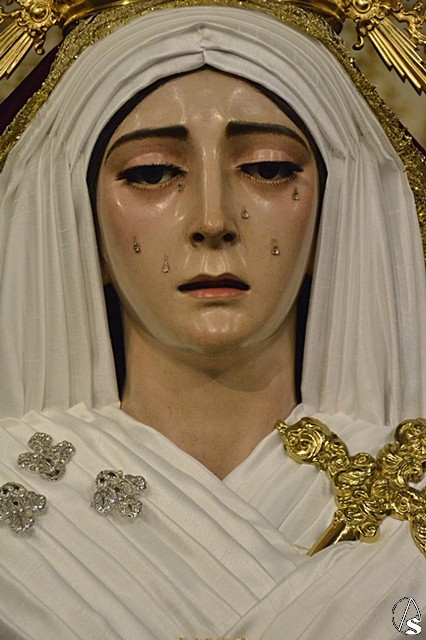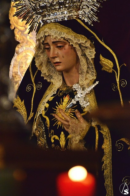 La imagen de María Santísima del Amor es la única talla realizada por Jesús Santos Calero que es titular de una hermandad de penitencia sevillana. Es una obra de candelero de vestir, realizada en madera de cedro y pino de Flandes en 1969. Fue bendecida el 18 de enero de 1970 por Antonio Franco Garrido, bajo la advocación de Nuestra Señora de la Aurora.