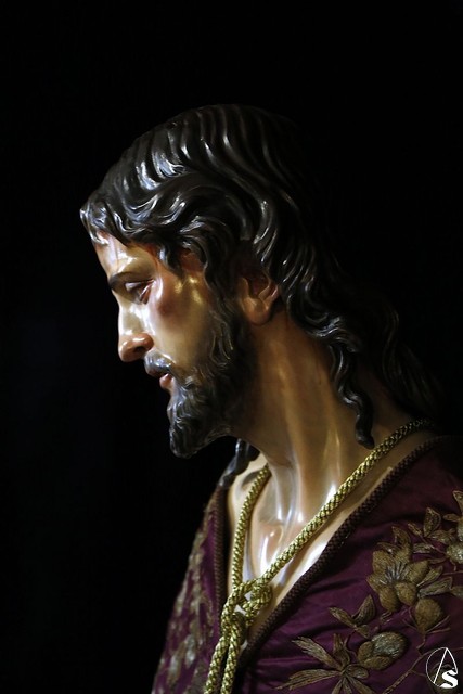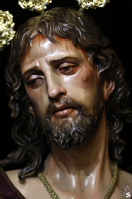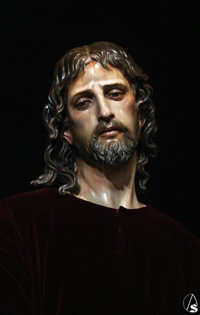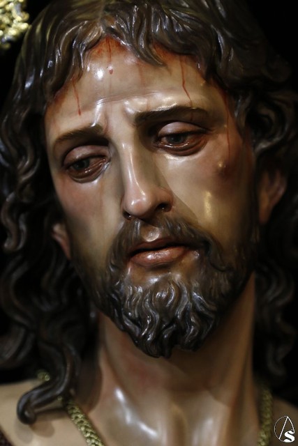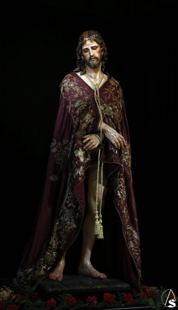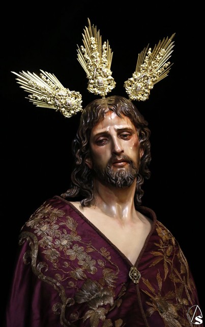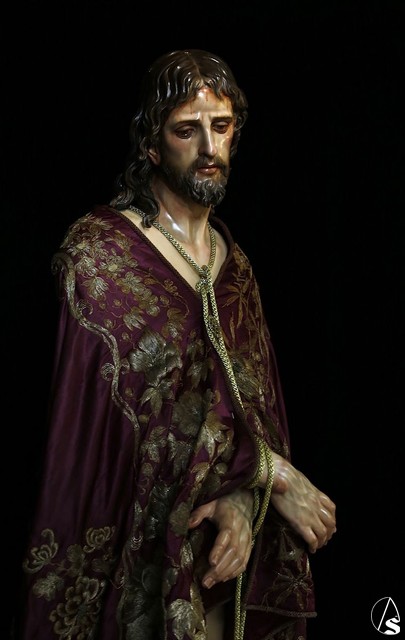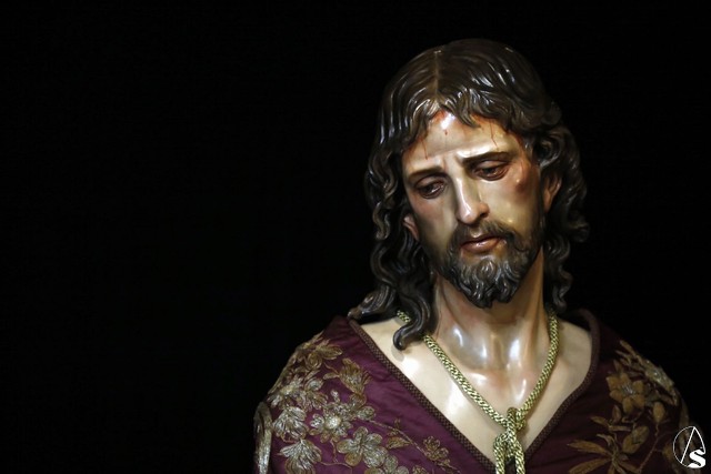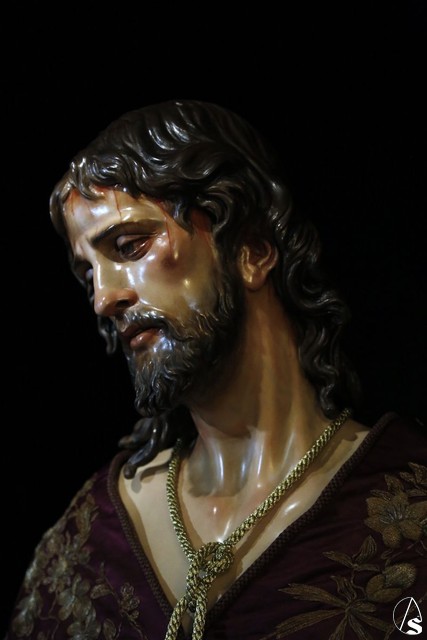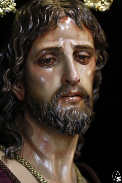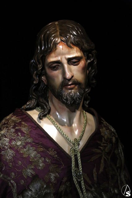 Representa el momento en que es juzgado por el Sanedrín y Caifás le cuestiona su Divinidad. Jesús, quieto y dolorido por los golpes recibidos por el prendimiento y la visita a la casa de Anás donde es golpeado en la mejilla, escucha resignado las palabras del Sumo Sacerdote que en un futuro, irá colocado detrás suya. Su rostro sereno presenta sudor y sangre de la hematoidriosis.