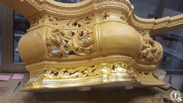 El proceso de dorado comenzaba este mismo verano. Encontrándose actualmente bastante avanzado. Para el 2019, año del 75 Aniversario de la hechura del Santísimo Cristo, se estrenará el frontal de la canastilla, empezando el proceso de dorado del paso de su Sagrado Titular.