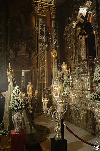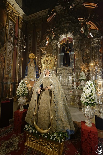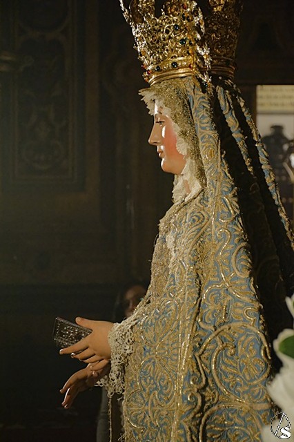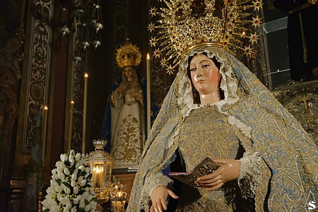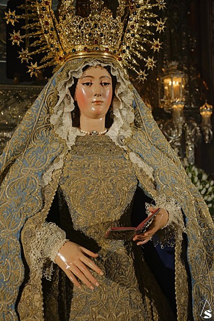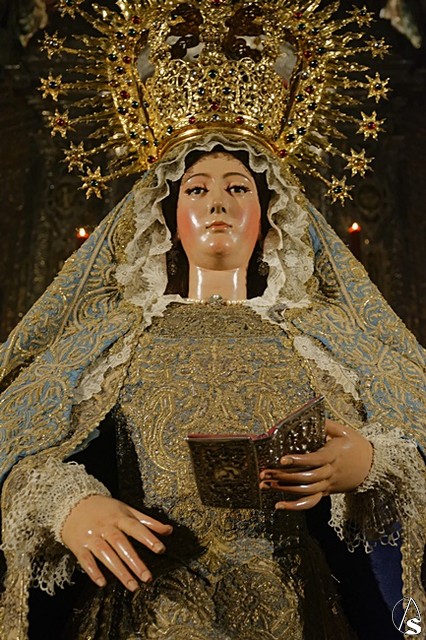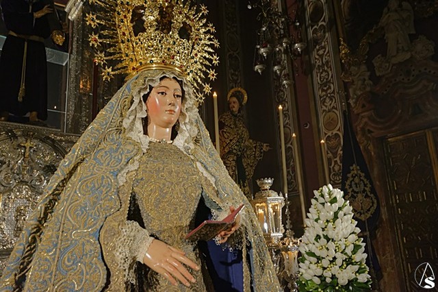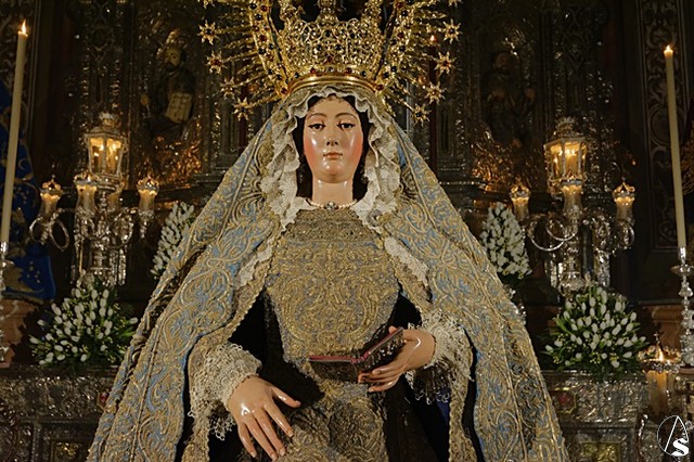 Arte Sacro. Con motivo del centenario de la fusión de las Hermandades de Pasión y la Sacramental del Salvador, que se está conmemorando en este 2018, la Inmaculada Virgen del Voto está siendo expuesta de forma extraordinaria en solemne besamanos con motivo de la festividad de la Purísima, en la Capilla Sacramental del Salvador.