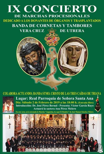 Arte Sacro. El sábado 2 de febrero, a las 18h, en la Real Parroquia de Santa Ana tendrá lugar el IX Concierto de Marchas Procesionales dedicado a los Donantes de órganos y trasplantados.